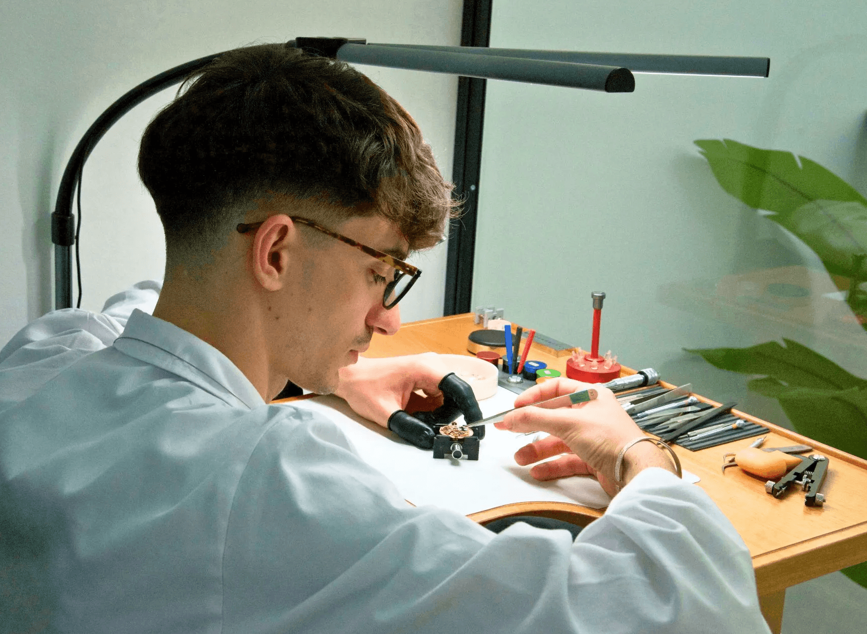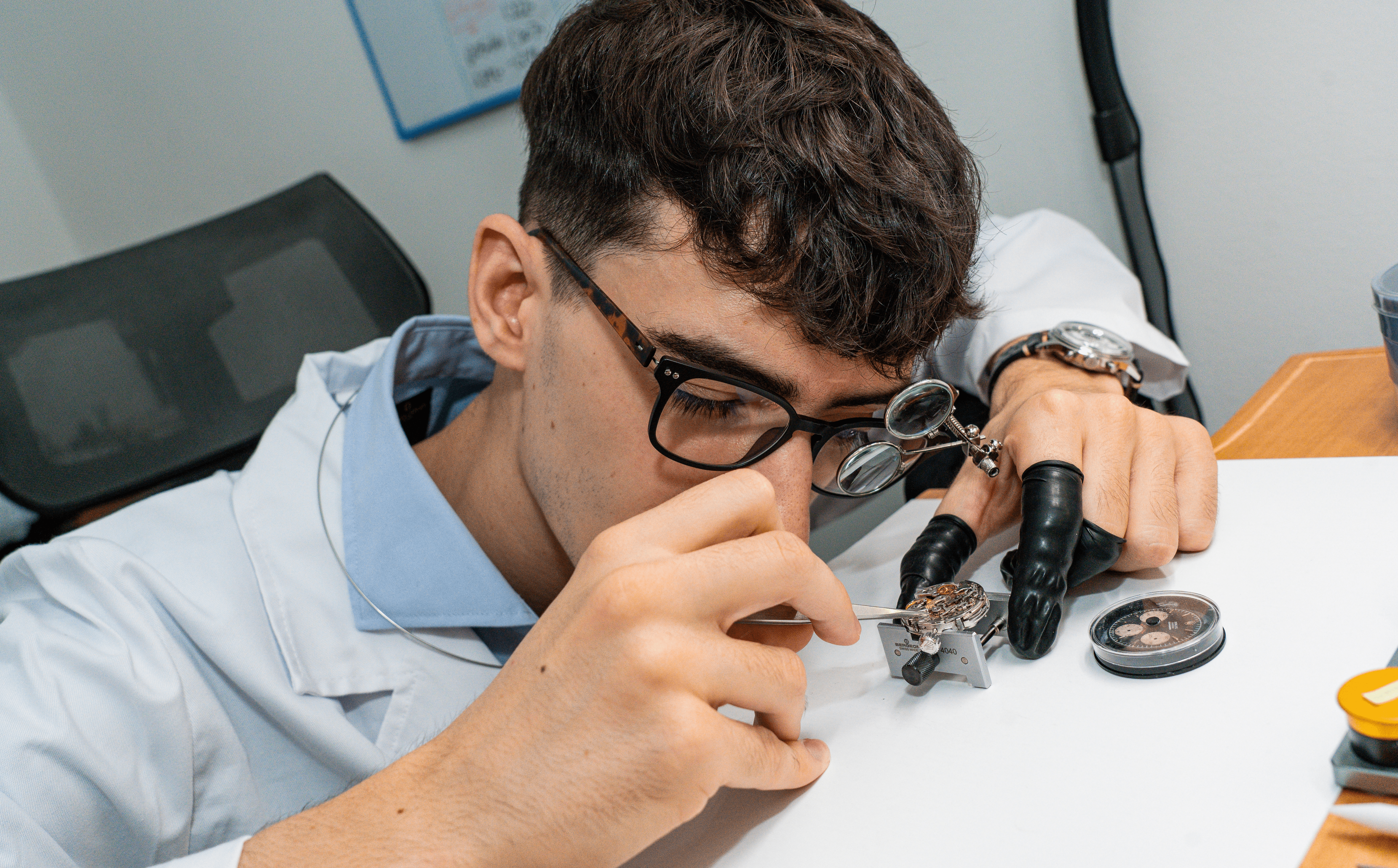 Un giorno, in classe, stavamo buttando giù l'ennesimo piano: un laboratorio diverso da qualsiasi cosa esistesse in Italia. Non un negozio. Non una vetrina. Un laboratorio dedicato esclusivamente all'alta orologeria: riparazioni, revisioni, rigenerazioni. Tutto visibile, tutto trasparente, ogni dettaglio pensato perché ogni intervento merita rispetto.