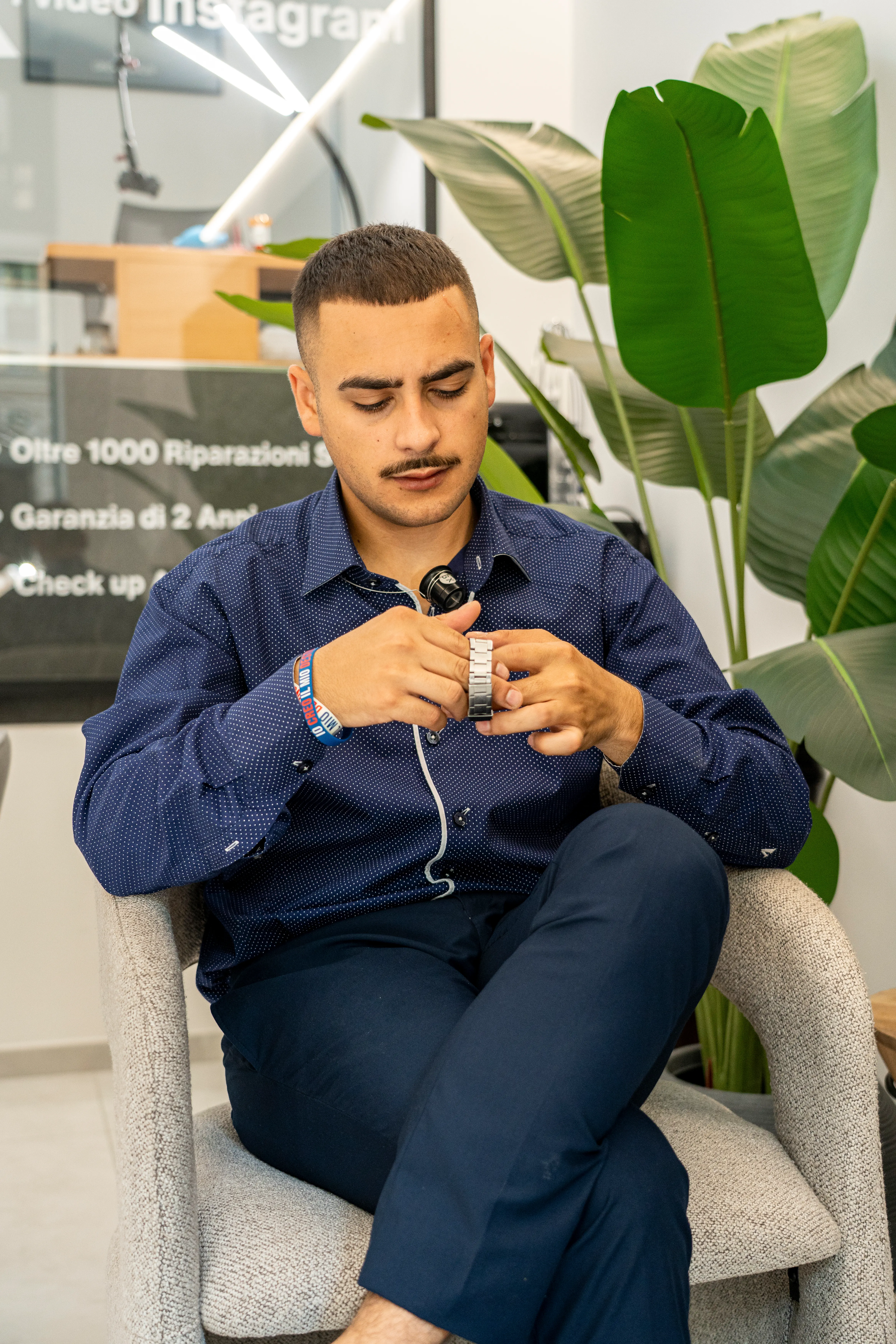 Provalo al polso. Le foto mentono. Un orologio da 42mm può sembrare perfetto online e risultare enorme sul tuo polso. Vai in boutique, prova, cammina, guarda come cade sotto il polsino della camicia.